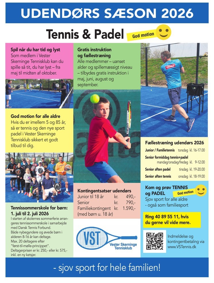 Her kan du læse om Vester Skerninge Tennisklub, klubbens historie, hvilke faciliteter vi kan tilbyde dig, hvornår der er træning og instruktion og hvad det koster at være medlem.
